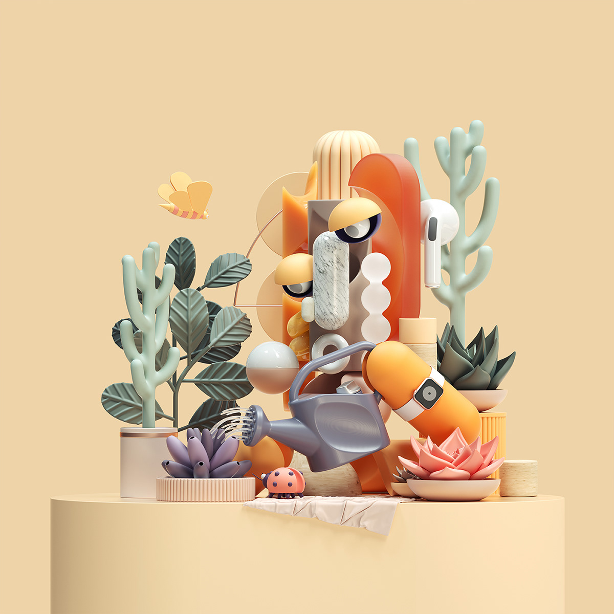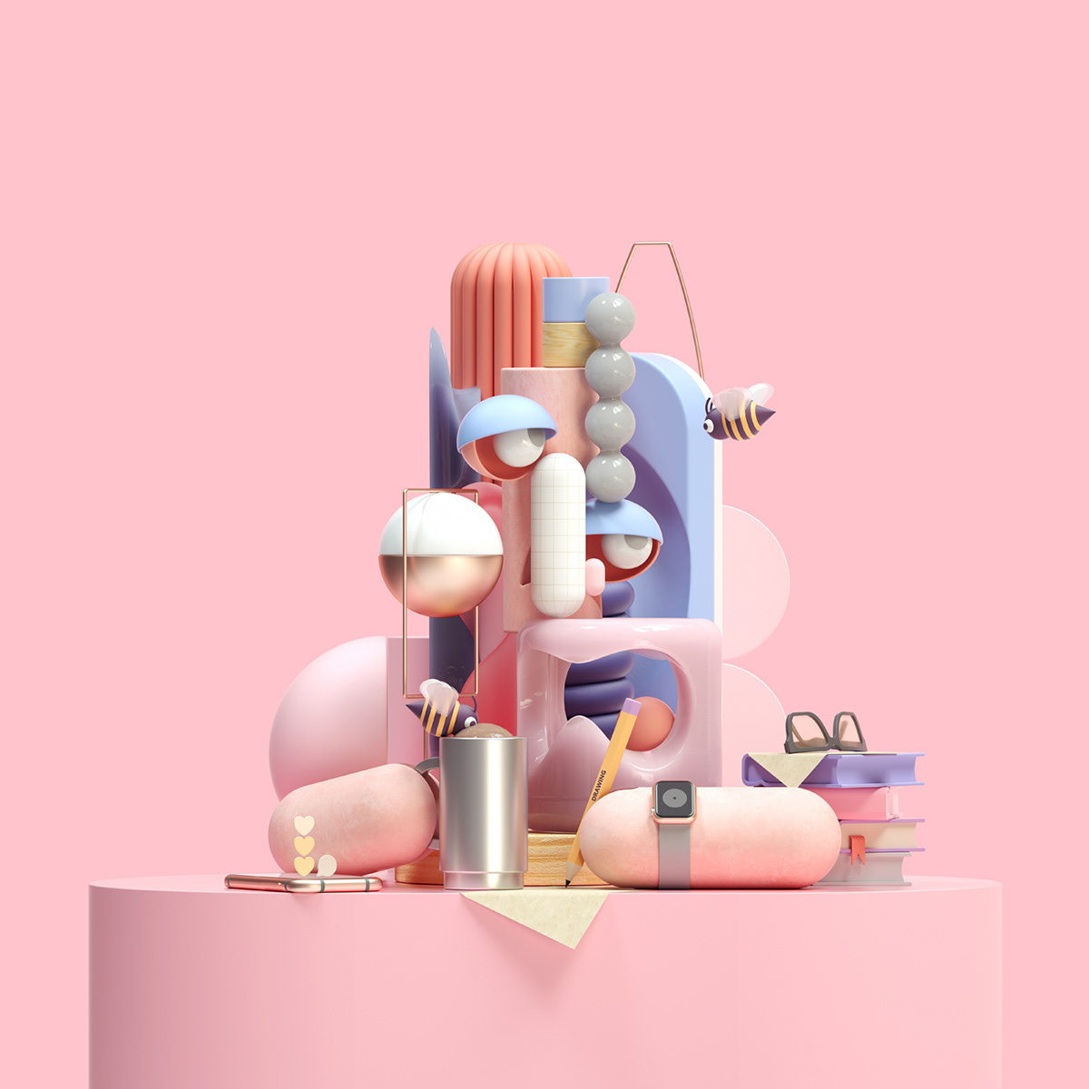 Pakistan-based art director and illustrator Omar Aqil (previously) continues his Character Illustrations series with more collaged portraits made from stacks of 3D objects. Using digital software including Adobe Photoshop, Cinema 4D, Octane, and Adobe Illu
